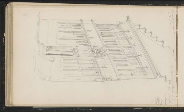 Cornelis Springer created this delicate pencil drawing of the portal of the Raadhuis in Emden. The linear structure of the sketch, with its precise, yet light strokes, captures the intricate details of the building's facade. The monochromatic palette directs our attention to the architectural forms and spatial relationships. The composition, although seemingly straightforward, plays with perspective. Springer subtly compresses the foreground while allowing the portal to dominate, creating a sense of depth. The contrast between the detailed ornamentation of the portal and the simpler rendering of the adjacent structures invites the viewer to engage with the artwork’s formal elements. The linear precision and controlled shading contribute to a sense of objectivity. Ultimately, the drawing invites us to consider how architectural forms can convey cultural and historical information. The sketch prompts us to reflect on the relationship between representation and reality. It encourages a deeper appreciation of the architectural and artistic traditions of Emden.