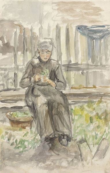 Fritz Syberg painted this watercolor of his wife, Anna Syberg, in their garden. Both were part of the artistic community living on the island of Fyn, around the turn of the 20th century. Anna, herself a painter, is captured here in a domestic space, and yet her posture, holding what appears to be painting sticks, suggests her own artistic endeavors. The light palette evokes a sense of quiet domesticity, yet there's a subtle tension in how Anna is represented. While the artwork superficially fits into traditional representations of women within the home, it also subtly hints at Anna’s identity as a working artist. By depicting Anna in her personal space, brush in hand, Fritz acknowledges her presence in a world that wasn't always welcoming to female artists. The painting invites us to reflect on the complexities of marriage, work, and identity, suggesting that even within the intimate sphere of domesticity, women artists found ways to assert their creative selves.