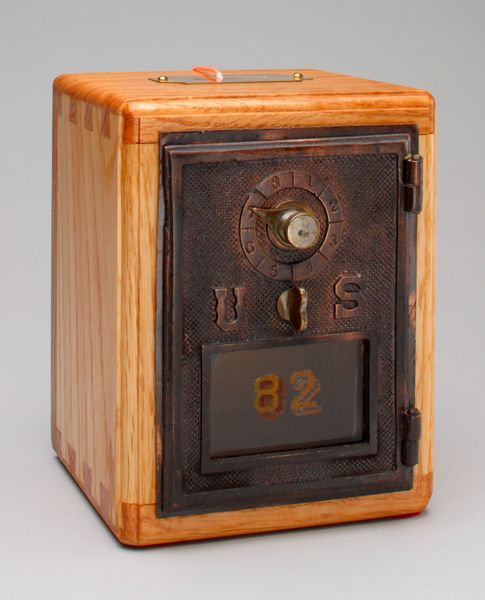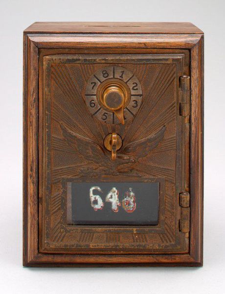 This -Money Converter (registering)- still bank, was made by an anonymous artist, and I wonder about their choice of materials and what their process was. I think of the color as not just red, but almost a red thought, how that singular color, applied with a kind of everyday-ness, can flatten so much into one idea. Notice how the color is applied evenly, methodically, to this small, box-like structure. It doesn’t seem concerned with showing off fancy brushwork. The imagery is almost like a child’s book, or maybe a German Expressionist woodcut. It strikes me, with its little dials and numbers, as a kind of early prototype for how we deal with money today. Currency is something we don’t touch anymore, but rather a digital transaction, and this object reminds me of that transition from the physical to the intangible. Like, what if Paul Klee designed a bank?