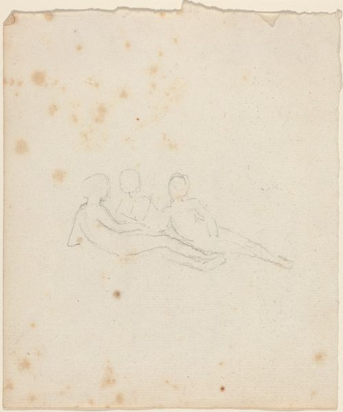 Curator: Standing before us is a pencil drawing by John Flaxman, dating from around 1790 to 1794. It's a study for a larger, never-realized work, "The Fury of Athamas." Editor: My first impression is tension, but almost subdued, like holding your breath underwater. You feel the strain, but the simple lines keep it... restrained? Curator: Restrained fits. Flaxman's neoclassical style is known for its linear elegance. What stands out to me is how he conveys such intense emotion with so few strokes. It's almost as if he's distilled the fury down to its purest visual essence. Look at the lines that depict the figures - the clear focus on outline. Editor: The story of Athamas itself is pretty brutal, right? Mad rage induced by Hera, driving him to kill one of his own children... You see Hera’s rage depicted throughout time—the symbolic meaning of infanticide as an archetypal experience really stays with people. It makes you think of your own emotional extremes, whether inherited, self-inflicted or externally driven. Curator: Exactly. And Flaxman's drawing, even in its unfinished state, captures that horrific moment. You can see Athamas, driven mad, and his wife Ino desperately trying to protect their child. There’s a very intentional layering, both stylistically with the simplicity of his strokes, and narratively, echoing mythic forms as contemporary human experiences. The visual language here connects us to timeless themes of vengeance and the destructive power of unchecked emotions. Editor: Flaxman was tapping into a long history of depicting this kind of primal emotional experience, and of women as emblems for cultural continuity, or at least striving towards it. Curator: This study feels so raw and immediate because of its minimalist approach and neoclassical presentation, that speaks to an exploration into enduring aspects of human nature that Flaxman so well captures with just pencil and paper. Editor: Well, it’s made me ponder my own inherited mythologies, that's for sure. A powerful little drawing. Curator: Indeed. It’s a poignant illustration that encourages deep, historical consideration.