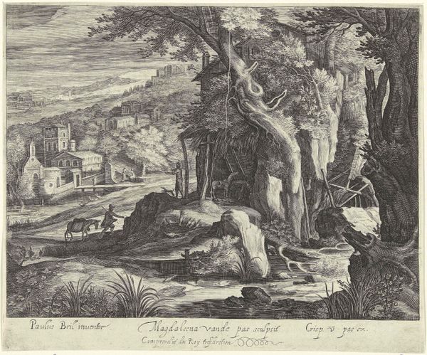 Magdalena van de Passe created this print of a 'Landscape with a Mill' sometime in the early 17th century. This seemingly conventional pastoral scene is imbued with the distinct social and economic character of the Dutch Golden Age. The prominence of the windmill speaks to the innovative technologies driving the Dutch economy, crucial for land reclamation and trade. This industrious spirit extends to the figures populating the landscape, each engaged in labor or transit. The ruined tower in the background might serve as a reminder of the recently won independence of the Dutch Republic. Van de Passe, as a woman artist in a male-dominated field, was part of a shift in the institutional structures of art. Further research into the printmaking practices and the role of women in the art world of the time could reveal more about the complex relationship between art, gender, and commerce in the early modern Netherlands.