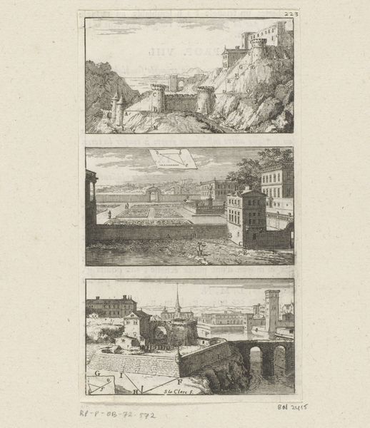 Jan Lucas van der Beek created these four landscape etchings of Eext, Muiderberg, Meppel, and 's-Graveland. The composition is neatly organized into four quadrants, each presenting a distinct vista. Observe how van der Beek employs a consistent formal structure across the images, yet infuses each with unique characteristics. Notice the intricate linework and tonal gradations achieved through etching. The subtle contrasts of light and shadow evoke a sense of depth. Semiotically, each landscape becomes a signifier of place, yet they also resonate with broader cultural and philosophical concerns of the time. The landscapes invite contemplation on the interplay between nature and human activity. The artist captures the quiet essence of each location, each offering a distinct experience. Consider how the artist uses the medium of etching to represent the relationship between form and meaning. The lines demarcate not just physical space but also cultural and historical contexts, opening up a dialogue on the ways in which we perceive and construct our environment.