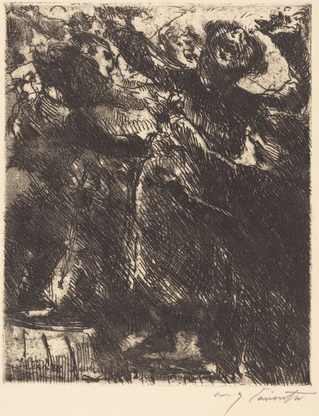 Ernst Ludwig Kirchner made this etching, Mountain Stream with Bathers, at an undetermined date. It’s a jumble of lines, a thicket of marks that feels both chaotic and deliberate. You know, the kind where you can almost feel the artist wrestling with the plate, trying to coax an image out of the metal. The texture is everything here. It's all scratchy and raw, like he attacked the plate with a handful of needles. Look at the way the lines build up to create shadows and depth. It's not about capturing reality, but about conveying a feeling, an energy. The whole thing feels like a fever dream of bodies and nature all tangled together. There’s this one spot in the lower left corner where the lines are so dense they almost become a solid mass, anchoring the whole composition. For me, this piece has echoes of Edvard Munch, that same sense of unease and psychological intensity. But Kirchner brings his own brand of rawness to the table. It's a reminder that art isn't always about pretty pictures, sometimes it's about grappling with the messy, complicated stuff of being alive.
