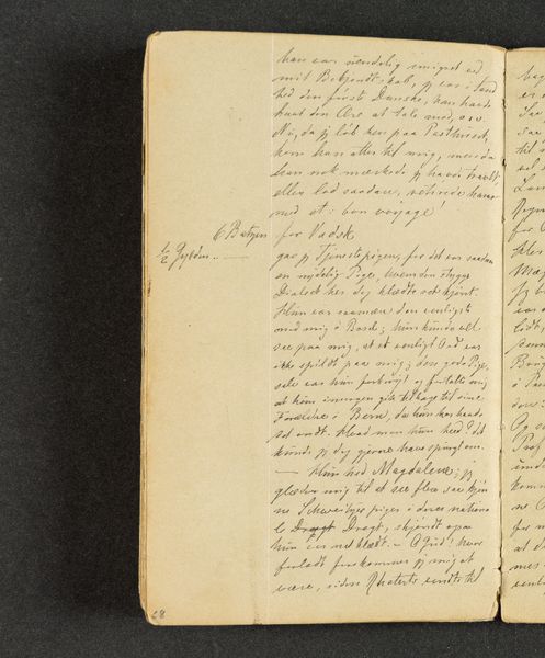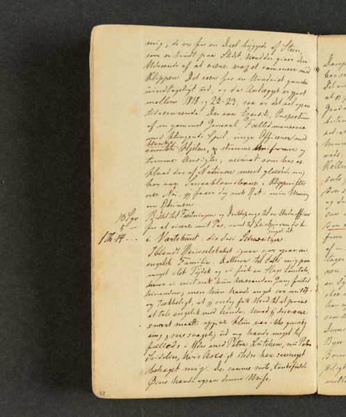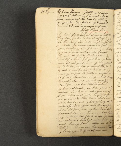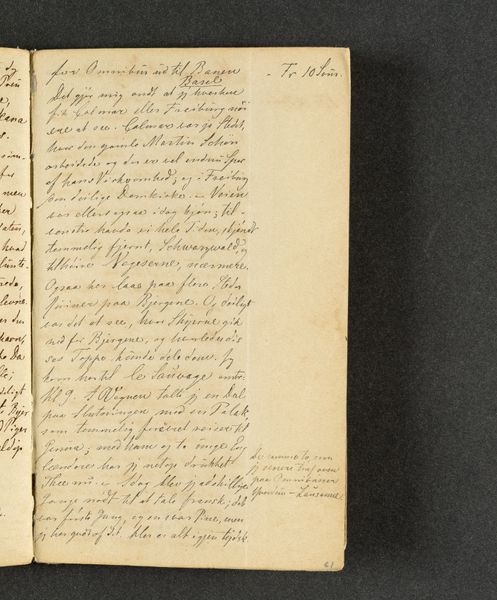 This is a page from Johan Thomas Lundbye's travel journal, likely created during his travels in the 1840s. Lundbye, a Danish Golden Age painter, used his journals not only to record his observations, but also to express his innermost thoughts and feelings. In this particular entry, we see Lundbye grappling with the complexities of identity and belonging. The text hints at his encounters with different cultures and perhaps feelings of alienation as he moves through foreign lands. His reflections on language, "set Franske og senere old Italimoke?" suggest a broader contemplation about cultural heritage, and how language shapes perception and experience. Consider that Lundbye wrote during a period of intense national romanticism. His personal quest to understand his place in the world resonates with broader societal questions about national identity. There's a delicate balance between the desire to connect with others and the struggle to maintain a sense of self. The journal isn't just a travelogue; it's a deeply personal exploration of the self in relation to the world.