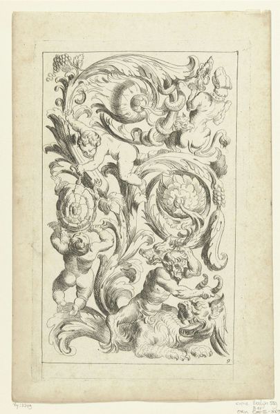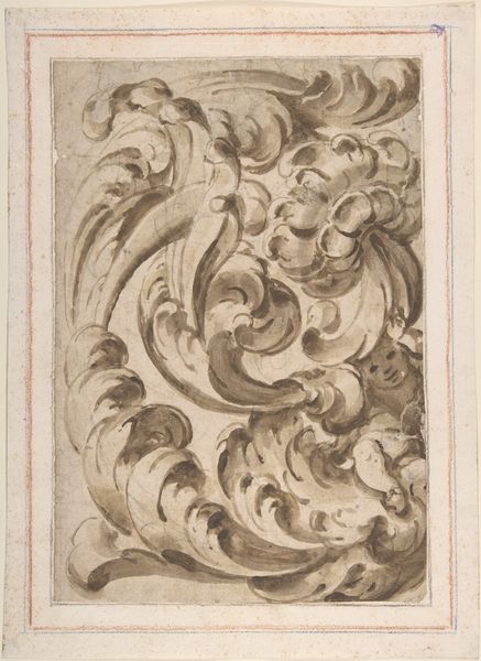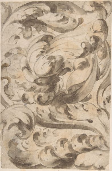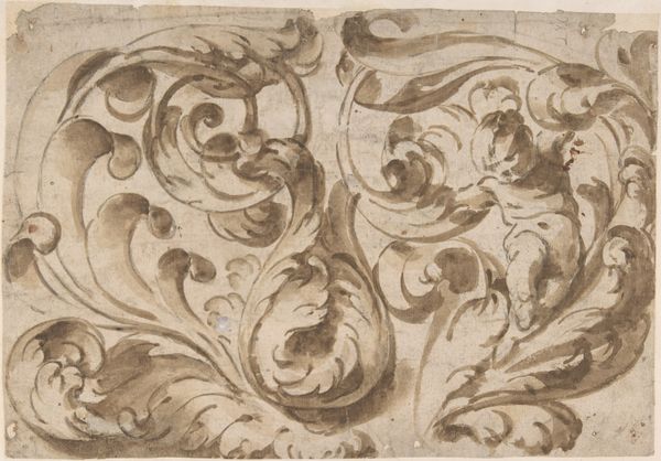 This drawing of an acanthus scroll was made by an anonymous artist using pen and brown ink with gray wash over graphite. Architectural ornament like this reflects specific aesthetic and cultural values. We can trace the use of acanthus leaves back to ancient Greek and Roman architecture, where it symbolized prosperity and enduring life, often adorning temples and public buildings to convey power. During the Renaissance, there was a renewed interest in classical forms, this scroll reflects the values of that moment. It’s important to remember that the classical past was a political battleground. Different European nations and cities would claim its legacy to authorize their own imperial ambitions. Studying the history of ornament helps us to understand the values and aspirations of the societies that produced it. Further research using pattern books and architectural treatises from this period might reveal the specific cultural and institutional contexts that shaped the creation and interpretation of the Acanthus Scroll.