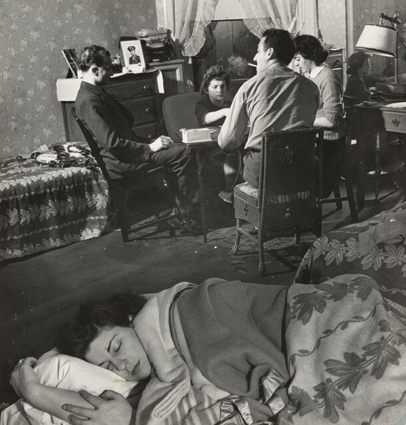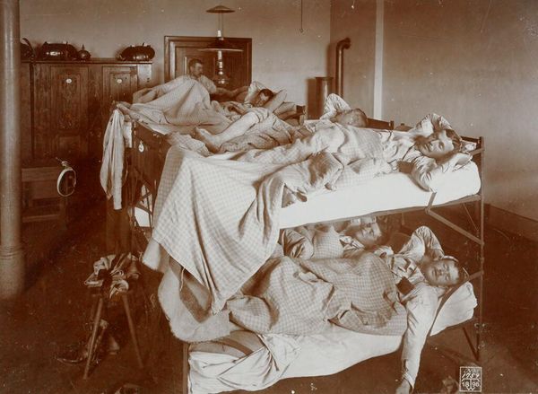 This photograph by Waldemar Titzenthaler captures his children in their Berlin home. The composition is immediately striking; it evokes a sense of intimate space, dominated by the large bed, its soft textures contrasting with the room's stark geometry. The unsettling atmosphere is achieved through the use of light and shadow, which creates a sense of unease. The girls’ direct gaze challenges us, destabilizing the conventional boundaries between the observed and the observer, drawing us into their enigmatic world. We might see this photographic approach through the lens of semiotics, where the children, with their direct gaze and positioning, become signs that disrupt traditional notions of childhood innocence and domestic tranquility. The photograph invites reflection on the constructed nature of representation. It encourages us to question the values and norms embedded within photographic practices.