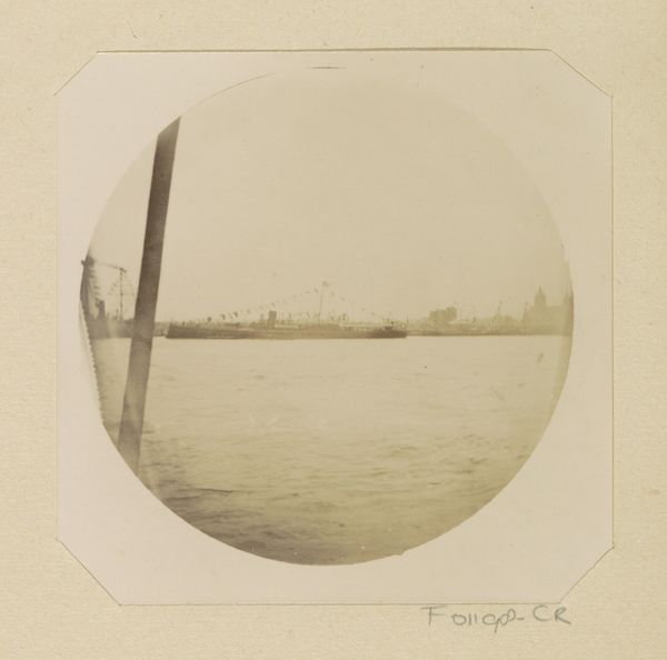 Curator: This evocative photograph captures a view of gondolas in the Venetian lagoon, with the church of San Giorgio Maggiore visible in the distance. The piece is attributed to Johanna Margaretha Piek, dating between 1889 and 1893. It’s a gelatin silver print, employing a circular frame. Editor: There's something melancholic about it, wouldn’t you say? The sepia tones cast a wistful light, as if gazing at a faded memory. The gondolas are still, almost ghostly. Curator: Precisely! Venice itself, as a recurring motif in art and literature, is often charged with notions of transience and mortality. This photograph seems to participate in that tradition, doesn’t it? The poles emerging from the water call to mind Saint Mark's Square pillars, long symbols of Venice itself. Editor: Absolutely, and one can’t help but consider the socioeconomic realities present in the image, although subtle. These gondolas signify wealth, tourism and privilege – starkly contrasting with the working-class realities of most Venetians at the time. Do you think this romantic lens ultimately sanitizes that lived experience? Curator: It's a valid critique. While this composition emphasizes the picturesque view, its stillness also holds space for introspection. Gondolas, tied up. A stagnant symbol for an imperial powerhouse past its prime. Consider, though, how perspective adds weight. Looking out, rather than in toward the lagoon-front palazzos. Editor: Good point. It flips the perspective of the wealthy tourists who often commission paintings like this. By emphasizing gondolas clustered and still, does it unconsciously invite us to reflect on that very economic and historical power structure? A beautiful ruin of an idealized world, made through processes dependent on economic structures that persist to this day. Curator: Perhaps it captures the beginning of modern tourism as a primarily visual, consumable experience? As a print medium, photography also democratized these iconic views of Venice, making it available to a wider audience. So, a quiet composition can still whisper complex things. Editor: A vital perspective to remember. What initially appeared like a simple melancholic scene unveils the threads of class, power, and the commodification of place and memory. Thanks for pointing those details out. Curator: A constant negotiation when gazing into the past, no? Every image asks, or rather demands, we look closer at the currents that brought it into being.