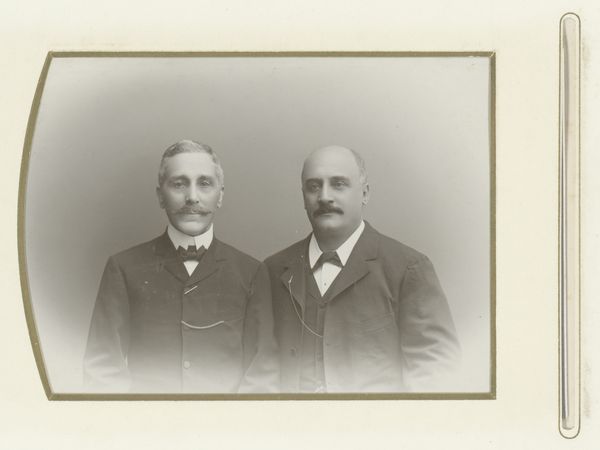 Editor: Here we have "Portret van Timothy Dwight en een portret van Henry Parks Wright," from 1895, a gelatin-silver print. It has such a formal and reserved feeling. What social narratives do you see reflected in this double portrait? Curator: It's interesting you pick up on that formality. Think about the context of late 19th-century America. Photography was becoming more accessible, yet portraiture, especially of this nature, remained largely a domain of the upper classes. Consider the power dynamics inherent in who gets memorialized in this way, and whose image circulates publicly. What statement do you think these portraits make about status and influence in that era? Editor: I guess it says something that they are being displayed together? Two portraits presented almost as equals within the frame? I see them as powerful and learned men... How would this portrait be viewed in the context of their gender and race? Curator: Precisely. The subjects here are white, male academics, undoubtedly beneficiaries of the existing social order. Their representation as learned and powerful is not accidental; it reflects and reinforces a patriarchal system. How might a contemporary audience, aware of issues of representation and inclusion, view this work differently than its original viewers? Editor: Perhaps with more critical awareness. Considering the voices that are missing or misrepresented, the lack of women or minorities who are not shown in the academic world, or the role photography played in perpetuating racial stereotypes... Curator: Exactly! This image can spark a conversation about representation, power, and the ongoing project of decolonizing our visual landscape. Seeing is not passive. Editor: It gives me a lot to think about, not just about what's in the frame but who *isn't.* Curator: Absolutely, this image highlights a particular viewpoint in American society. That alone can bring about significant learning for a contemporary audience.