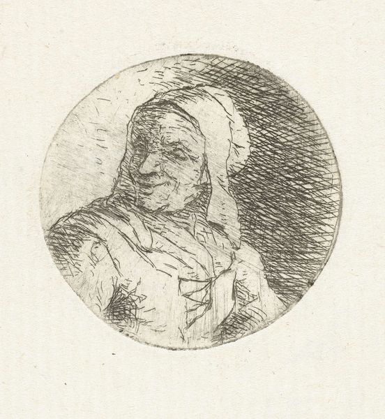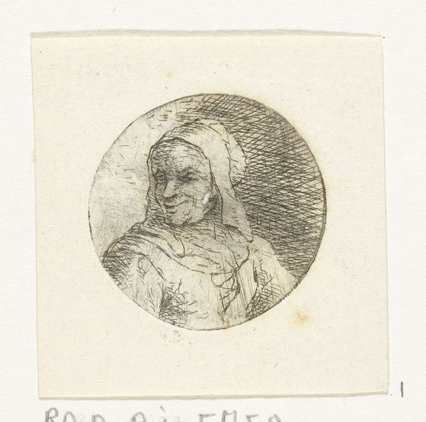 Christina Chalon created this miniature etching of an unknown woman, currently housed in the Rijksmuseum. The portrait is defined by the delicate yet assertive network of lines, forming shapes that bring the woman to life. The composition is framed within a circle, where hatching creates a stark contrast to the figure. Notice how Chalon’s use of lines directs our gaze, from the dense cross-hatching that models the hood to the more delicate strokes defining her facial features. This technique not only gives form but also expresses a certain psychology, capturing a fleeting expression. In this small format, Chalon challenges the conventional portrait. Rather than idealizing her subject, she uses the raw, linear quality of the etching to portray a sense of humanity. The cross-hatching could be interpreted as a metaphor for the complexities and intersections of life. The woman’s gaze and subtle smile destabilize fixed meanings of beauty and representation.