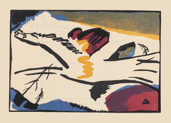 Curator: Welcome. Before us is Roy Lichtenstein’s 1967 work, "Brushstrokes." Editor: It's so energetic! The strokes almost jump off the canvas, with those bold colors and thick outlines. There's a sense of unfinished action, like we caught the painter mid-gesture. Curator: Exactly. Lichtenstein, deeply embedded in the Pop Art movement, was fascinated by the intersection of high and low culture. Consider how he appropriates the Abstract Expressionist gesture—the expressive brushstroke—and transforms it into a mass-produced commodity through his signature Ben-Day dots. Editor: Right. It’s fascinating to consider Lichtenstein lifting from popular culture. His emphasis on Ben-Day dots references his background in commercial lithography. I mean, it completely flattens and re-presents the spontaneous act of painting, essentially mimicking its mass production. Curator: And that flattening serves a critical function. Lichtenstein is commenting on the commodification of art and the role of the artist in a consumer society. The large scale also becomes part of this commentary: the gesture becomes monumental and public. How does one retain authenticity when an act can be so easily reproduced? Editor: The piece also brings up some questions about labor, specifically around reproductive labor and the status of making things at this point in art history. Look at the way he meticulously recreates something seemingly impulsive by hand, or rather, screen printing—making the labor almost invisible yet entirely necessary. Curator: True. The work forces us to acknowledge the changing definitions of value, labor, and authenticity in an era increasingly defined by mass media and consumerism. Editor: It seems that what might appear as random marks hold so much significance in terms of material conditions and even historical weight. Curator: A truly unique take on the language of art. Editor: Precisely. A language constantly molded by the forces around it.