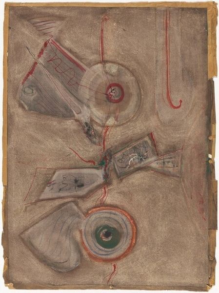 Editor: Here we have Hannelore Baron’s “Spring Letter” from 1973, a mixed-media collage on paper. The layering and muted colors give it such a fragile, almost melancholic feel. What strikes you most about its visual composition? Curator: The composition is indeed intriguing. Consider the spatial relationships: a dark, solid square juxtaposed with semi-transparent, linear forms. Observe how Baron utilizes line, creating implied shapes and a sense of depth despite the flatness of the collage. The superimposition creates both harmony and tension, wouldn't you agree? Editor: Definitely, the tension is key. It’s like she’s built up a world, but one that's delicate and about to fall apart. I’m also interested in her line, how scratchy and imperfect it looks! Curator: Precisely! The line quality disrupts any illusion of perfection. Notice how she contrasts organic and geometric forms? It's through such structural elements that Baron conveys meaning, beyond any literal representation. Editor: So you're seeing the arrangement itself as the primary message, rather than any particular narrative? Curator: Indeed. Let us not forget the material itself: found paper, ink, glue... their very presence as humble, repurposed elements is significant. How do these textural choices impact the overall experience, in your opinion? Editor: The textures make it feel so intimate. Thinking about how each element contributes to the mood is reshaping how I initially interpreted the artwork! Curator: And I found our conversation revealing. Deconstructing the structural elements has shed light on an alternative, more nuanced, approach to the artwork and collage making itself.