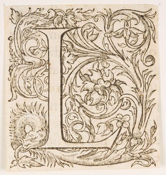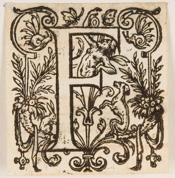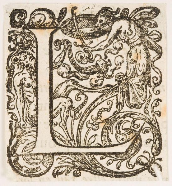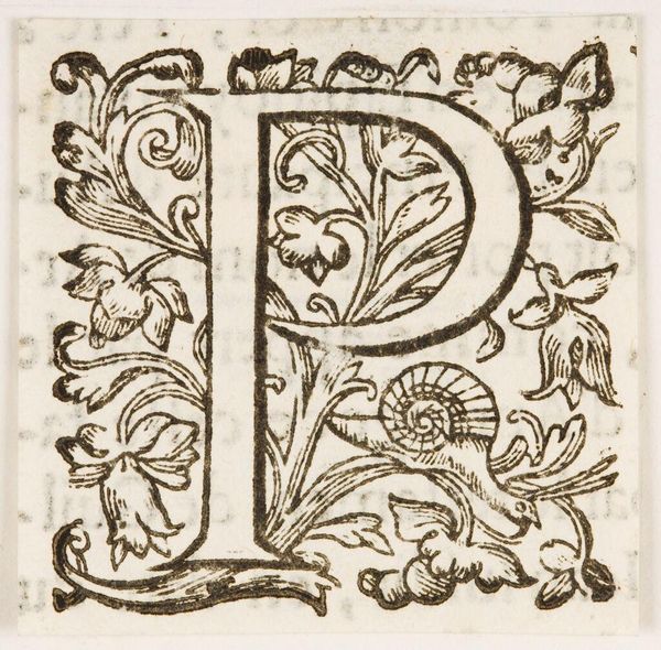 Curator: This striking image from the Harvard Art Museums is simply titled "Letter P," by an anonymous artist. The work itself seems to be a print. Editor: It feels both playful and unsettling. The winged figures and lush ornamentation are charming, but there's a strange density to the forms. Curator: Consider the context. Initial letters like this were often used at the start of chapters in printed books, and the elaborate design would have signaled the beginning of a significant new section. Editor: The inclusion of mythological figures and natural motifs—like the bird perched atop the letter—suggests a reverence for knowledge and nature. Perhaps the artist is signaling a connection between classical wisdom and the printed word. Curator: Or consider how these images normalized certain ideal forms. These initial letters were often highly gendered, with the figures coded to indicate proper roles in social hierarchies. Editor: Even now, I find myself drawn to the interplay between the letterform and the human figures. It feels like a celebration of the body, intertwined with intellect. Curator: Yes, and thinking about the labour to produce it. Someone designed and carved this. It speaks to the democratizing influence of print. Editor: Exactly. It is a fascinating artifact—both beautiful and deeply embedded in its time. Curator: Indeed. A small object with such a large story to tell.