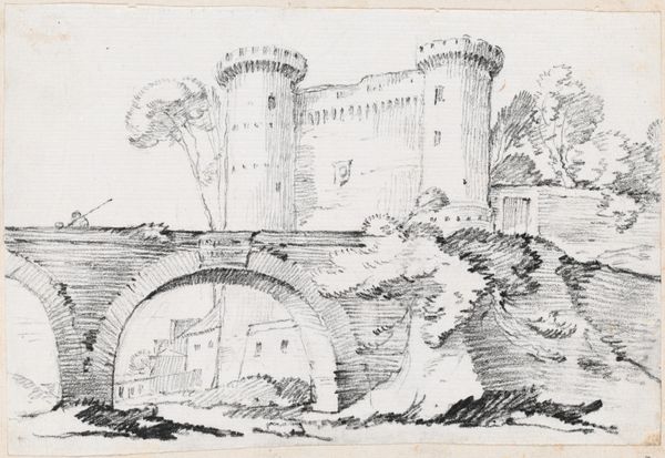 Joseph Marie Vien created this sketch of Buildings behind the Vatican using graphite on paper. The artist has used soft graphite and paper to render a study of architectural forms and light effects, capturing the essence of the scene with economical lines and shading. Graphite, in its raw state, comes directly from the earth. To create the variety of drawing implements used here, it would have been combined with clay and fired at different temperatures for different degrees of hardness. Paper, produced through labor-intensive processes of pulping and pressing fibers, serves as the ground for this drawing. Vien's masterful handling transforms these relatively simple materials into a compelling image, demonstrating the power of traditional techniques. This drawing challenges any rigid separation of fine art from the so-called "minor" arts. The artist has engaged with skilled traditions, inviting us to appreciate the artwork not just for its subject matter, but for the artistry embedded in its making.