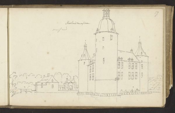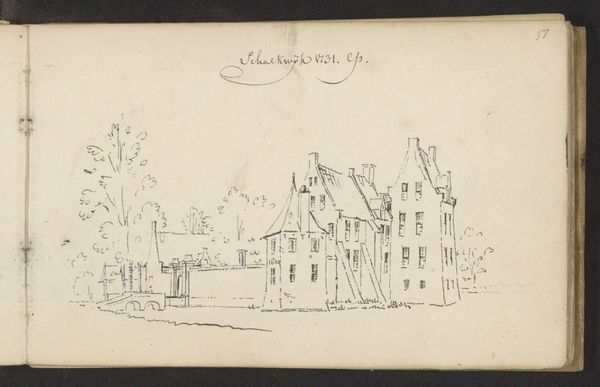 Abraham de Haen II captured this sketch of Kasteel Eyll near Kleef with pen and ink. The castle, a symbol of authority and power, stands here as more than just a building; it represents a nexus of history, culture, and human aspiration. The solid structure of the castle is a familiar motif throughout history. These fortresses remind us of the Tower of Babel. From medieval keeps to Renaissance palaces, they embody a desire for permanence and a struggle against the transient nature of existence. In this sketch, we see the castle almost as a protective figure, a silent witness to the passage of time. Consider how the image of a castle has evolved. In ancient times, fortifications were built for survival, a motif we still see today in modern-day city planning. The castle taps into our collective memory, stirring deep-seated feelings of safety, but also isolation. This psychological tension—the desire for security versus the fear of confinement—adds to the drawing's emotive power, engaging us on a subconscious level. The castle embodies the recurring, non-linear progression of historical symbols, reminding us that such motifs resurface, evolve, and take on new meanings throughout time.