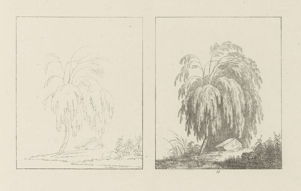 Editor: Here we have "Botanisk blad fra Schouws skrifter," a print from 1851 by H.C. Henneberg, rendered using woodcut on paper. There’s a quiet, almost scientific feel to it, with detailed botanical studies arranged side-by-side. What do you see as the most compelling element of its construction? Curator: What immediately strikes me is the arrangement of forms. Henneberg meticulously delineates the different botanical elements, but he does so in a rather unique format: contrasting one form with another. Notice, for instance, the relationship between the mass of the first tree on the left versus the delicate linear quality of the palm trees, as well as other small bits, to the right. How do you see the contrasting styles working in relation to one another? Editor: I guess they draw your eye to each plant's unique structure, like how the coconut section is shown both whole and halved. Is the realism of the print crucial to understanding it, or does it operate more on a level of formal relationships? Curator: While botanical accuracy is undoubtedly present, the formal relationships are the keys to understanding the artist’s aims. Examine the contrast between light and shadow. Henneberg isn’t merely depicting plants; he is meticulously charting and creating an image whose success is tied intimately to the internal elements of form and contrast. Do you perceive that it may also work conceptually? Editor: I do. Looking at it through that lens really makes me appreciate how the different plants almost exist as studies in shape and texture as much as realistic depictions of nature. Thanks for opening my eyes to this other dimension. Curator: Indeed. By analyzing its structure, one unlocks the image's core components to build new frameworks of meaning. It is a worthwhile methodology when exploring art!