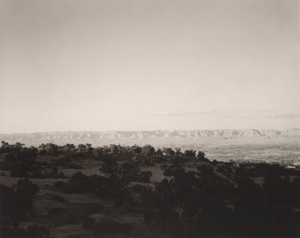 Robert Adams made this gelatin silver print, "Grand Mesa, Mesa County, Colorado," sometime in the late twentieth century. Adams’ seemingly straightforward landscape photography belies a critical commentary on the changing American West. This image encapsulates the fraught relationship between untouched nature and human intervention. The Grand Mesa looms in the background, a symbol of enduring natural beauty. Yet, our eye is drawn to the stark, almost aggressive, power line slicing across the horizon. Made at a time of increasing suburban development, Adams’ work implicitly asks, at what cost does progress come? Are we sacrificing the sublime for the sake of convenience? To truly understand Adams' project, one might explore archives related to land use, environmental policy, and the history of photography as social critique. By placing art within a broader socio-political context, we can start to see it as a powerful form of cultural commentary.