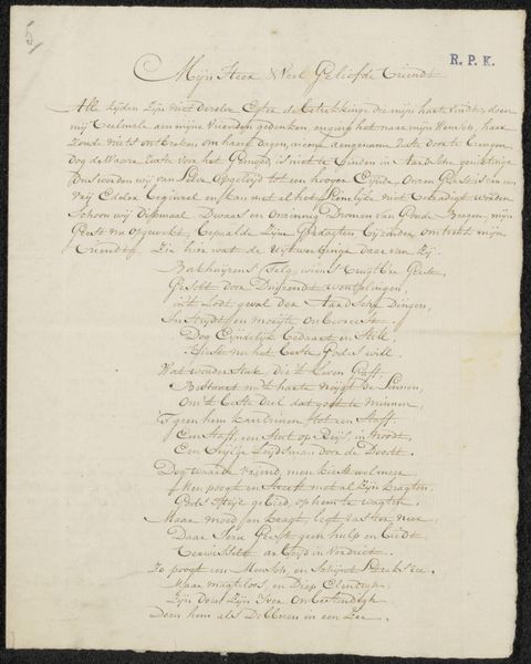 This page of text about Philippus de Monte, a 16th-century composer from the Habsburg Netherlands, resides in the collection of the Rijksmuseum. Although the author is unknown, the text offers a glimpse into the cultural values of its time. Music here is described as divine, even capable of connecting humanity with the heavens. The text emphasizes the power of music to "delight, animate, and excite," portraying it as a conduit to spiritual and intellectual realms. Music and dance are seen as uplifting and powerful forms of expression, a sentiment that reflects the historical importance of the arts in spiritual life. Notice the reference to ancient Greek concepts, revealing an intellectual world steeped in classical traditions, yet simultaneously, the writing suggests a desire to reconcile these traditions with contemporary values. It also emphasizes the profound reverence for music as a means of expressing devotion and attaining spiritual insight. This page gives us a glimpse into the dialogue between faith, art, and knowledge during this historical period.