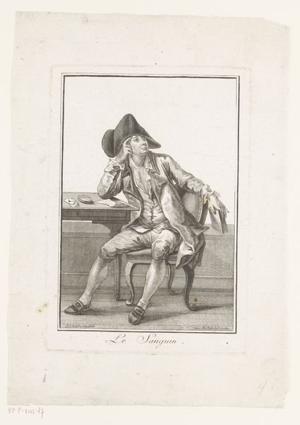Editor: This engraving from 1784, “Woekeraar met bril voor een tafel met geld en een weegschaal”—an usurer with glasses before a table with money and scales—strikes me as both darkly comic and rather unsettling. What symbols are at play here, in your opinion? Curator: Well, consider the balance scales. They are a very old symbol, seen in ancient Egyptian art, always speaking to this need for equilibrium, justice. Yet here, in an image critiquing usury, aren't they being employed to scrutinize profit above all else? It’s a subversion of justice using the very emblem of justice itself! Editor: That’s a fascinating inversion! What about the figure himself? Curator: He’s meticulously examining a coin through his glasses, detached from humanity. These eyeglasses could imply not only weakened eyesight, or vision of an older man, but nearsightedness on a moral and metaphorical level: the inability to see or care about consequences or others. Notice, too, the usurer isn’t hidden away; he's presented in the plain light of day. What does that suggest? Editor: Perhaps it implies that such practices were common and widely accepted despite their questionable ethics. So, the artist critiques the morality of society itself, as revealed in this character and his attributes. Curator: Precisely. These seemingly small tokens tell us how deeply woven such attitudes were. Do you see similar instances today, where symbols of trust are used to create less-than-ethical enterprises? Editor: Absolutely. This engraving gives me a new perspective, connecting historical anxieties about wealth with contemporary issues. Curator: It’s all about deciphering these images, recognizing how symbols maintain meaning, even as societies evolve and challenge them.
