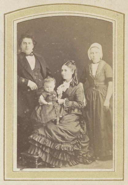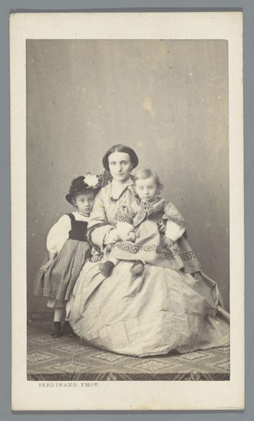 This photograph of three children was made by Bernardus Bruining using the 19th-century albumen print process. This technique involved coating paper with a layer of egg white and then silver nitrate, creating a surface sensitive to light. Looking closely, you can see the subtle tonal range achieved through this method. The light delicately graces the children's faces and clothing, bringing them to life. The texture of the paper adds a tactile quality to the image. Photography in the 19th century was a laborious process. It needed careful preparation and precise timing. As photography became more popular, studios emerged, providing a space for professional photographers like Bruining to capture portraits of families and individuals. This democratization of image-making democratized the concept of portraiture, which was previously a privilege of the wealthy. Considering the time, labor, and artistry involved in creating this photograph, we can appreciate it not just as a record of three children, but also as a tangible artifact of a particular moment in the history of visual culture.