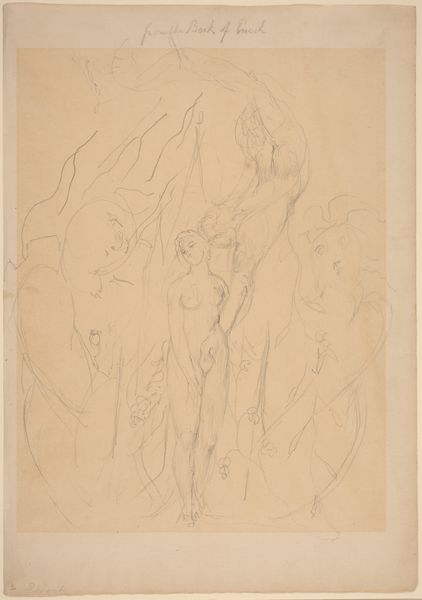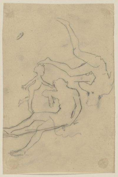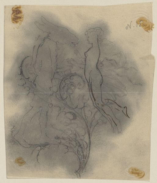 Art Historian: Here we have a drawing titled "Eine Elfe, ein Tablett tragend," or "An Elf Carrying a Tray," created around 1867-1868 by Paul Konewka. It’s currently housed at the Städel Museum. Curator: There's a delicate sadness about this piece, a ghostly ethereality to the figure. The sparse lines on the discolored paper really lend to the sense of longing. It almost looks like a preliminary sketch of some forgotten figure from folklore, or an unfinished idea of one. Art Historian: Konewka was a fascinating figure in his own right. He wasn't traditionally trained; he actually worked primarily as a silhouette artist. These silhouettes, often illustrations for books, were hugely popular, offering an accessible art form for the burgeoning middle class in Germany at the time. This drawing provides an intimate glimpse into Konewka's broader practice. Curator: Yes, and considering Konewka's position in a rapidly industrializing Germany, this image takes on an added significance. It almost seems to be wistfully contemplating nature against encroaching urbanization. Are these mythological figures stand-ins for lost freedoms? Is this why we, still to this day, look at the art with the figures like elves? Art Historian: Precisely. We must remember that Romanticism flourished throughout Europe during this period. Industrial society's stark rationalism created a hunger for fantasy, mythology, and spirituality, as antidotes to lived experience. "Eine Elfe, ein Tablett tragend" plays directly into that sensibility. This image also resonates with Pre-Raphaelite movement happening in England around the same time; an escape into a idealized and more pure past, or imaginary world. Curator: You know, considering this piece through a contemporary lens of gender and representation…There's something compellingly androgynous about the elf. This androgyny really destabilizes conventional beauty ideals. Art Historian: That's such a sharp point. And thinking about audience reception – I can see how its dreamlike quality was also deeply engaging at the time, especially to a broad audience, including women who were becoming more prominent in the art world as consumers and occasionally creators. It allowed one to conjure and embody dreams within one’s domestic sphere. Curator: Looking at this delicate study, and understanding its socio-historical context truly allows the viewer to ponder about what stories and hidden histories it whispers to the present. I leave feeling melancholy, but oddly, filled with hope. Art Historian: I concur completely. What this Konewka drawing encapsulates is an enduring human need: to escape the confines of our everyday realities and search the intangible through myth. Thank you.