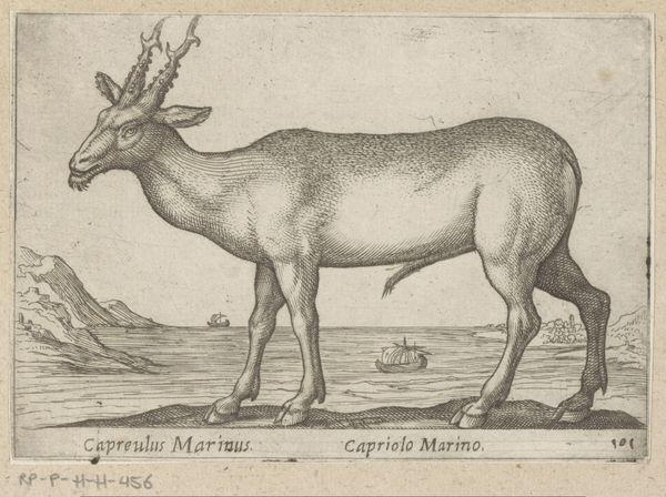 Curator: Here we see Antonio Tempesta’s engraving "Hert," dating back to before 1650, currently held at the Rijksmuseum. What's your initial reaction? Editor: Immediately, it’s the sheer physicality conveyed by the engraving that strikes me. The density of the lines builds form meticulously. You can feel the weight of the animal; you almost imagine it in 3D. Curator: The engraving indeed uses line and form powerfully. For me, Tempesta uses the deer as a symbol of nobility and perhaps even purity within this idealized landscape. Think about its appearance throughout mythology, how this image might tap into collective beliefs. Editor: I am curious about how the production method affects meaning. The sharp lines, created through the careful carving into the copper plate, create a sort of scientific precision. Is it pure admiration, or is it meant for anatomical study, and what labor enabled its production? Curator: It certainly speaks to the Renaissance desire to understand the natural world, and the engravings circulated knowledge to an eager, growing audience. And yet, that striving for realism is infused with symbolic weight – the deer’s association with Artemis, perhaps? It adds another layer. Editor: You can see that influence here. But there's also an aspect that goes beyond pure symbolism, looking at the skill and repetition needed to etch this design into a copper plate. We’re not just looking at a beautiful creature; we’re observing craft. What does it mean to choose that particular medium? How does it frame labor and expertise? Curator: True. Perhaps it lies in the tension between those intentions – objective observation through skilled crafting, on the one hand, and culturally conditioned appreciation of its symbolic properties on the other hand. This creates dialogue, adding depth. Editor: Agreed. Considering all of this opens further areas for investigation in Tempesta’s “Hert.” Curator: It certainly leaves one contemplating how layers of cultural significance can be both embedded and evoked through masterful artistry.