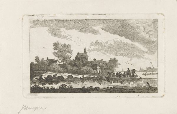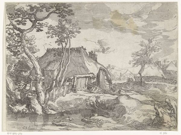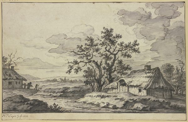 Editor: Here we have "Village on a Stream, with a Rider on the Way," a drawing in ink by Hieronymus Lapis, dated 1773. I'm immediately drawn to the contrast between the rustic, almost humble village buildings and the vastness of the landscape. What stories do you think this drawing is trying to tell? Curator: It speaks to the way people situate themselves, doesn't it? This piece highlights the historical tension between human presence and the natural world, rendered at a moment when ideas about progress and enlightenment were starting to reshape European societies. Think about the figure on horseback; how might we interpret his role within the village, but also within this sweeping depiction of nature? Editor: He seems to be passing through, perhaps connecting the village to a larger world? I imagine travel at that time was not easy. Curator: Precisely. His journey can symbolize broader themes of trade, communication, even societal change, challenging us to think critically about mobility and access in the 18th century. In a way, the drawing asks questions about who has the freedom to move and connect, and what systems enable or prevent that freedom. And also about social class... what are your thoughts about that aspect? Editor: So, the drawing is more than just a pretty landscape; it reflects the social and political dynamics of its time, which impact class divisions? That’s not what I thought at first glance! Curator: Exactly. It urges us to look beyond the surface aesthetics. Art always holds up a mirror to society, sometimes reflecting uncomfortable truths. Editor: I never would have considered those social underpinnings on my own, but now I can appreciate this pastoral scene on a much deeper level. Thanks! Curator: And now hopefully it invites you, and all listeners, to challenge and redefine dominant historical narratives in what you see in other works as well!