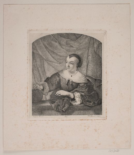 Curator: I find myself utterly drawn to the detail in this print; a woman, richly dressed, her expression caught somewhere between contentment and perhaps a hint of…resignation? It's almost ghostly, emerging from the soft grey hues. Editor: Indeed. What we're looking at here is "Portret van een rijk uitgedoste onbekende vrouw," or "Portrait of a Richly Dressed Unknown Woman," an engraving by William Unger, likely completed between 1861 and 1889. You know, it's interesting how these types of portraits immortalize a certain societal class, even if the individual remains nameless. Curator: Nameless, yes, but her clothing tells a story, doesn’t it? Look at that lace collar – a froth of pure artistry. And the embroidered gown. She is drowning in wealth! I’m sure she would say she earned all this luxury and deserved it, not without personal expenses in her own world. You are thinking, what did wealth mean for a woman then, rather than who this lady might have been? Editor: Precisely! Portraits like these are less about the individual, more about displaying status and conforming to very strict social expectations and accepted class roles. Curator: Yet, in capturing those material details with such painstaking accuracy, Unger, paradoxically, reveals a universal vulnerability. Despite the finery, that look in her eyes…I detect perhaps some loneliness. You could say, is loneliness universal regardless of money? That’s my art side getting carried away again, probably. Editor: No, no. I see that, too. While the artist undoubtedly aimed for objective representation within the stylistic frame of realism and academic art, emotion leaks through! It’s unavoidable. It would be extremely rare for wealthy ladies in these years to express themselves on an institutional level without great difficulties. That inner emotion you mention could be linked to that frustration perhaps? Curator: And it invites us to fill in the gaps, to speculate on the life behind the elaborate dress. It reminds me how potent an image can be, even one created through meticulous reproductive techniques like engraving. To find so much expression hidden within her…what a thought. Editor: Absolutely, William Unger presents us not just with an image, but also with an artifact – an object embodying complex social and cultural narratives about gender, class, and representation itself. Even without knowing the sitter's identity, we engage with her, through the artist's choices and our own interpretive lens, in the space the museum makes available. A fascinating interplay.