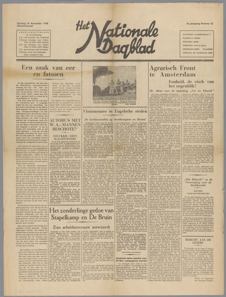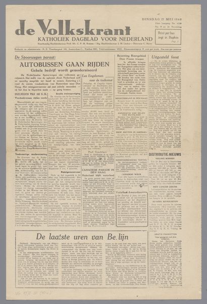 This is ‘De Vrije Pers’, a newspaper made in 1945 by the Samenwerkende ex-illegale organen, or "Cooperating Former Illegal Organizations" which is quite a mouthful! What strikes me about this piece is its sheer density. Just look at the way the text is packed together, column after column, line after line. It’s like the information is pressing in on you, demanding to be read. The layout isn't conventionally attractive. It’s a stark, functional design, all about getting the message across with maximum efficiency. If you look closely at the headlines, you can almost hear the shouts of the newsboys on the street. “Hitler is dood” it proclaims boldly, “Dönitz zijn opvolger.” Even though I can’t read the language, I can appreciate the weight of that message. It feels like a collective sigh of relief, a moment of shared triumph. This reminds me of the agitprop of the early 20th century. It is a raw, urgent form of communication. It reminds us that art doesn’t always have to be pretty. Sometimes, it just needs to be heard.