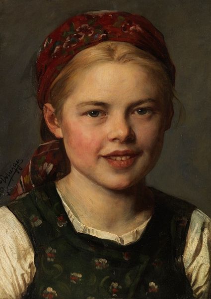 William Bouguereau created "Une petite fille" using oil on canvas. The painting focuses on the girl's head and shoulders, set against a muted, dark background that heightens the impact of the girl's luminous skin. Bouguereau’s academic style is evident in the smooth, almost porcelain-like finish he achieves. This technique—avoiding visible brushstrokes—creates an idealized vision of youth. This pursuit of an ideal form is a classical feature, yet it also speaks to contemporary ideas about beauty and representation. The red ribbon adds a striking color contrast. The composition, while simple, directs our gaze towards the girl's expression. Her wistful look and the soft modelling of her features invite contemplation on themes of innocence, beauty and the passage of time. This focus aligns with 19th-century salon art values, highlighting beauty and emotional appeal. Ultimately, this artwork serves as a canvas onto which viewers can project their interpretations, reflecting the evolving dialogue between art, culture, and perception.