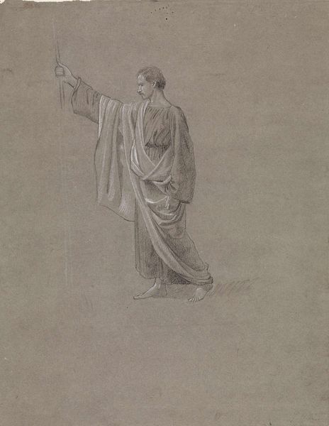 Isidore Pils created this red chalk drawing, Sainte Clotilde, during a period of renewed interest in religious and historical subjects. Pils, who lived through significant political upheaval in France, often explored themes of faith and national identity in his work. Here, Clotilde, a 6th-century queen who played a key role in the conversion of the Franks to Christianity, is depicted in a moment of supplication. Her upward gaze and open arms convey a sense of divine communication. Pils' choice to focus on a female figure central to the establishment of Christian rule reflects the 19th-century investment in the moral authority of women within the context of nation-building. There is something both powerful and vulnerable in this portrayal of Clotilde. While the drawing invokes the historical and religious narratives, it also invites us to consider the personal dimensions of faith, and the complex intersections of gender, power, and spirituality.