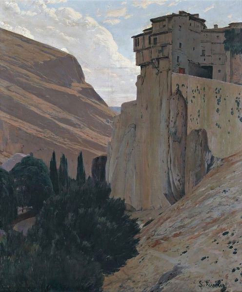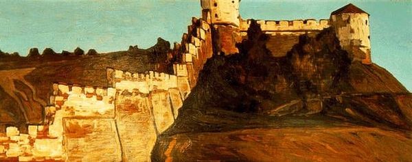 Nicholas Roerich conjured "Smolensk. Tower." with paint sometime in the early 20th century, and it’s this fascinating mix of greens, browns and oranges that first grabs you, doesn’t it? It’s all about that process, the physicality of moving paint around. Look how Roerich layers the colours, especially on the tower. It’s thick, almost chunky in places, giving the stone a real weight, a tangible presence. You can almost feel the rough texture of the ancient bricks under your fingers. The green of the hill, though, is smoother, more fluid. See that winding path leading up to the tower? It’s like a brushstroke that pulls you right into the heart of the painting. Roerich reminds me a bit of Marsden Hartley, both of them searching for something spiritual in the landscape, but Roerich’s got this extra layer of earthy, almost medieval grit. Art isn't about answers, it's about exploring, embracing the questions, and diving headfirst into the beautiful mess of it all.