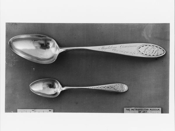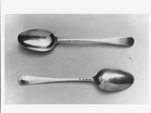 Editor: Here we see two "Trifid Tablespoons" crafted by John Coney, who lived from 1655 to 1722. What strikes me is how these everyday objects, rendered in silver, elevate dining to something almost ceremonial. What stories do these spoons whisper to you? Curator: Well, consider silver itself. It is not just a material; it's a signifier of status, of wealth, and, importantly, of cultural aspirations. These spoons, made by a prominent silversmith, served as emblems of belonging. Think about the act of sharing a meal. Editor: So, you are saying the spoons are about more than just eating. Curator: Precisely. They are about kinship, social bonds, and the rituals that define a community. They reflect a longing for order and refinement in a rapidly changing world. Editor: I see. It’s amazing how much meaning can be embedded in something as simple as a spoon. Curator: Indeed. Everyday objects are imbued with symbolic weight. Looking closely opens a window into the past.