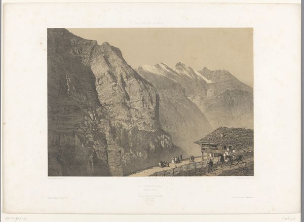 Eugène Cicéri made this landscape of Grindelwald with pencil and watercolor. See how the towering mountains loom over the delicate village, a powerful symbol of nature's sublime force. Mountains, as primordial symbols, remind us of the divine or eternal. Think of Mount Olympus in Greek mythology, or Mount Sinai where Moses received the Ten Commandments. Here, the mountain's imposing presence evokes feelings of awe and insignificance. The glaciers, like frozen rivers, represent time's relentless flow. These natural forms also echo across cultures. The jagged peaks find resonance in the spires of Gothic cathedrals, reaching towards the heavens. This recurring motif speaks to our enduring quest for transcendence, a visual echo through time. The image engages our collective memory, stirring a sense of wonder and the sublime embedded deep within our psyche.