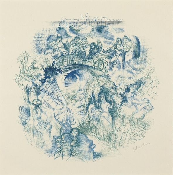 This drawing by Bernhard Hasler presents a whirlwind of figures and symbols, alluding to a complex narrative. Angels, dancers, and perhaps devils swirl around a central scene, possibly depicting a saint or martyr. The motif of the swirling figures, reminiscent of a maenad frenzy or bacchanal, echoes ancient Dionysian rites. These themes reappear throughout history, from classical sculptures to Renaissance paintings. Consider Botticelli’s "Mystic Nativity" or the circular composition of William Blake’s drawings. The dynamic arrangement conveys a sense of ecstasy or madness. The tension between the sacred and the profane is palpable, suggesting a deep psychological exploration of human experience, where earthly and divine forces meet in a dance of destruction and creation. These symbols return and morph across time, each time colored by the anxieties and ecstasies of those who depict them.