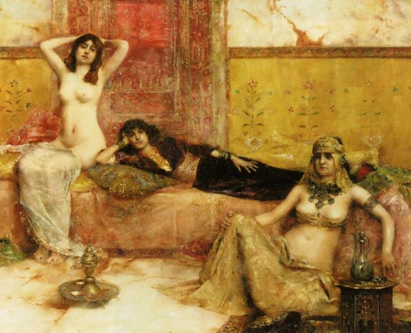 Frank Dicksee painted "Passion" using oil on canvas. Here we see a woman adorned in red robes. Red, the colour of blood and fire, has always symbolized strong emotions, ranging from love and passion to anger and war. Note how the artist drapes her in it, signalling intensity, and the almost frenzied energy the woman is experiencing. A similar effect can be found in Titian's "Bacchus and Ariadne," where the god Bacchus, consumed by love, appears in a cloak of vibrant red. Even the leopard print on which she reclines evokes ancient associations with Dionysus, the god of ecstasy. Over time, this association shifted. In the Renaissance, the leopard became a symbol of lust, appearing in allegorical depictions of the sin. The lilies in the background symbolize purity. Perhaps there is tension between these symbols in the painting, reflecting the complexities of desire. These symbols tap into our collective unconscious, and are recurring motifs that echo through time.