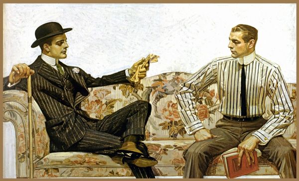 Norman Rockwell painted this scene, called Facts Of Life, and I love how he uses paint to tell a story, one we’ve all probably experienced in some form. The colours are warm and inviting, like an old photograph, but there's a tension in the air, right? Look at the boy, slouching in the chair, hands over his face. The paint is applied thinly, almost like a wash, in some areas, allowing the texture of the canvas to peek through, especially in his clothes. Then you’ve got his father, trying to have *the* conversation, the brushstrokes here are more controlled, more precise, reflecting his attempt to maintain composure. The cat looks like its trying to hide from the conversation. Rockwell uses these details, and the way he handles the paint, to create a snapshot of a very specific moment, it reminds me of Edward Hopper, but with more narrative. It's a slice of life, painted with humour and a lot of heart. It's a reminder that art isn't just about what we see, but how it makes us feel, and what stories it helps us tell.