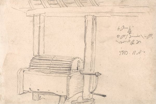 Curator: This sketch, "Hemelbed, mogelijk zeventiende-eeuws," or "Four-Poster Bed, possibly seventeenth-century" by George Hendrik Breitner, dates from 1897. It’s a quick pencil drawing on paper, housed here at the Rijksmuseum. My initial impression is how fleeting it feels, like a whispered secret. Editor: Yes, there’s an undeniable intimacy. Given Breitner’s association with Amsterdam Impressionism and his chronicling of urban life, I immediately consider the context of domestic space and its representation within rapidly changing social structures. How did private life intersect with the burgeoning public sphere? Curator: Interesting point! I see it also from the perspective of the artist's hand, the rapid, almost frantic lines. You can practically feel Breitner sketching this, likely in a private moment. The immediacy of the pencil on paper highlights the labor and process of observation. Editor: Absolutely. Considering issues around class and labor, where does this bed sit? Is it a site of work or repose? The canopy implies a certain status, but the sketchy execution suggests it’s a study rather than a commission for a wealthy patron. Whose rest are we observing here, and who likely made the textile components of this bed? Curator: Those layers of production are key. But look closer – notice the texture of the paper itself. It seems aged, perhaps even recycled, adding another layer of material history to the artwork's narrative. The raw materials available shaped the production of the image itself. Editor: True. I keep returning to that hastily drawn canopy. Does it represent protection or confinement? The very act of sketching, especially within enclosed spaces, raises questions of gender roles, observation, and power dynamics in representing interior lives. Curator: Perhaps it's both protection and confinement. As for gender, without further evidence, focusing on the bed itself opens the potential for readings beyond purely gendered associations, to consider the economic production. Editor: Agreed. Broadening our perspective is vital to consider historical nuance. Curator: For me, returning to the visible layers of process reminds me how a seemingly simple sketch is dense with intention, revealing so much about art-making. Editor: And by viewing the artwork through its many social, historical, and material threads, we uncover so much more of ourselves.
