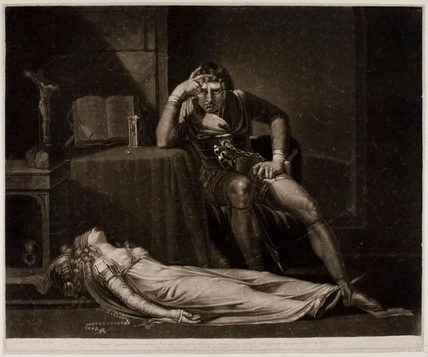 Editor: So, this is Claude Mellan's "Suicide of Lucretia," an engraving. The starkness of the scene, created purely through lines, is striking. What can you tell me about Mellan's technique and how it serves the narrative here? Curator: Notice how Mellan employs a single, continuous line to model form and texture. This challenges the traditional notion of engraving as mere reproduction. The labor-intensive process itself becomes a commentary on Lucretia's plight, highlighting the physicality and constraint imposed upon her. Consider the social context: what does it mean to depict female virtue through such a demanding, almost austere, process? Editor: That's fascinating! So, the medium itself contributes to the message. Thanks! Curator: Precisely. It reframes our understanding of both the artwork and the story it portrays.