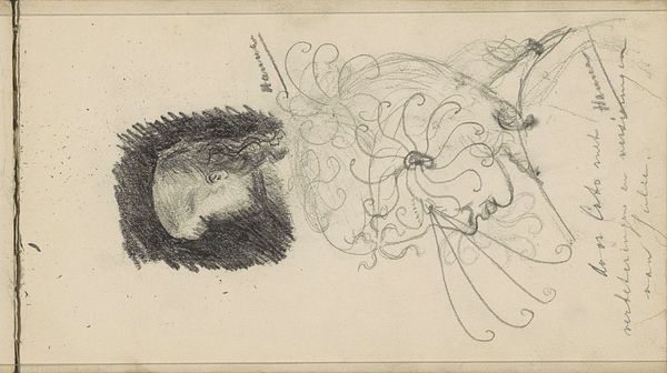 Here's a look at some giraffe heads and a neck, sketched by Carel Adolph Lion Cachet, likely in a notebook, with pen or pencil. It's that kind of drawing where you can almost see the artist's hand moving across the page, feeling out the form. Look at the neck of the main giraffe, see how the lines bunch together, almost like a little scribble? It’s not about perfection here, it's about a feeling, a gesture. The drawing almost becomes a kind of abstract pattern, an exploration of mark making. Cachet isn't trying to capture a perfect likeness. There is a freedom to the line, the image almost dissolves into abstraction, like something by Picasso or Matisse when they get into line drawings. It's all about the energy of the line, the joy of looking and drawing.