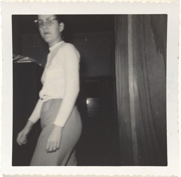 This black and white photograph, simply titled "Doris Wright, February 1959," was made by an anonymous artist, sometime around then. The grey tones give it a subdued, thoughtful quality. The composition feels off-kilter, like a snapshot caught mid-motion. I’m drawn to the shadows that define the space around Doris, that weird corner above her head. The way the light falls feels so real, and the contrast between the light and shadow is pretty stark. You get a sense of a specific moment, in an interior space, but it also could be anywhere, and any time. It reminds me of some of the early experiments with photography by artists like Gerhard Richter, where the focus is on the banality of the everyday. It makes you think about how photography can turn the ordinary into something kind of poignant and mysterious. It’s an ongoing conversation about seeing and feeling, and how we relate to the world around us.