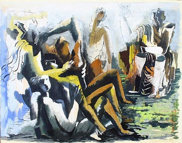 Walter Battiss made this work, "Rock Art Figures," at an unknown date, using watercolor. It depicts abstracted figures reminiscent of ancient rock paintings, a common subject in Battiss's oeuvre. Battiss lived in South Africa during the height of apartheid, and he became interested in the indigenous art of the region. This interest extended to the rock art of the San people. Here, Battiss adopts a deliberately naive style, seeking to connect with a pre-colonial past. He critiques the institutionalised racism of his present, searching for an authentic South African identity. The image creates meaning through cultural references and historical associations. He was a progressive, in favour of challenging South Africa's social norms, which in that time were deeply divided. As historians, our understanding of Battiss's painting is contingent on understanding these social and institutional contexts. Researching the cultural and political history of South Africa helps us interpret the meaning of the artwork.
