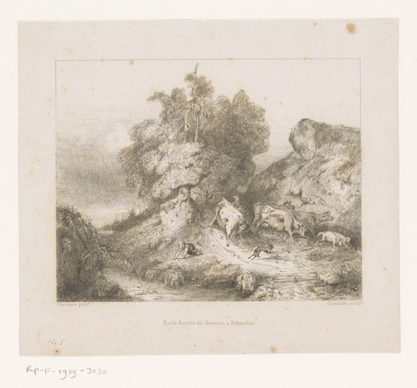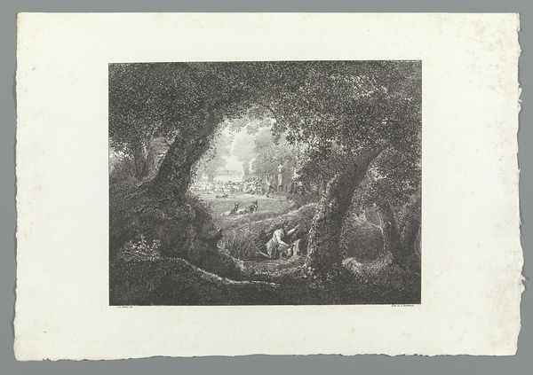 Willem Jacob Hofdijk made this print, ‘Half-undressed Man in the Forest,’ in the Netherlands sometime in the 19th century. It depicts a man, partially clothed, resting beneath a large tree in a forest. This image, in its romantic depiction of nature, reflects the cultural values of the time. In the 19th century, there was a growing interest in nature and the 'noble savage,' a concept that idealized indigenous people as being uncorrupted by civilization. Hofdijk, influenced by these romantic ideals, presents us with a scene that is both peaceful and evocative. The man, though not entirely naked, is clearly in tune with his natural surroundings. The Rijksmuseum, where this print is housed, plays a crucial role in preserving and interpreting such artworks. As historians, we can delve deeper into the cultural context of this print by studying the literature, philosophy, and social movements of the 19th century. By understanding these influences, we can better appreciate the meaning and significance of Hofdijk's print.
