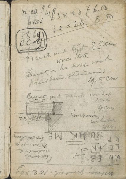 Curator: At first glance, it’s a jumble! A peek into someone's mind, like rifling through their desk drawers – but somehow poetic? Editor: We’re looking at "Annotaties," a pencil drawing on paper by George Hendrik Breitner. It seems to have been worked on from 1886 to 1908, so what we’re really seeing is time and thought layered upon each other. The Rijksmuseum holds it, contextualizing Breitner's impressionistic cityscapes and portraits within a documentary impulse. Curator: Ah, “Annotaties” makes perfect sense now! It reminds me of my own chaotic notes – sudden, urgent ideas fighting for space, all interconnected in ways only I fully understand, kind of spilling into the creative ether... it's beautifully unresolved. Editor: The sketch seems like a precursor to so much cultural criticism that uses handwriting as a source. Here, that personal script challenges our idea of authority of writing – and that becomes very interesting when placed within the institutional framing of the museum. Who does annotation serve and who gets to produce them? Curator: Oh, I like that... I'd seen it more as a kind of abstract self-portrait through words – these aren’t neat, confident pronouncements. You get a palpable sense of his searching, his uncertainty. It is really something that you pointed the authority – or a challenge to the authority– in this artwork, very perceptive! Editor: Definitely, but notice the historical context: it seems Breitner had to assert his right to produce these inscriptions within the rapidly changing artistic landscape and amidst his negotiation with traditions of documentation, perhaps even resistance, within the context of early modernism. It's not just personal, it is always already political. Curator: Exactly, it's a lovely mess. And Breitner really invites us into his working process… like you say, a perfect bridge from art to activism, challenging convention and offering, even demanding, the world sees things differently.