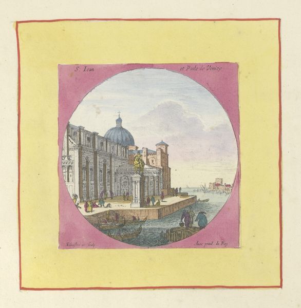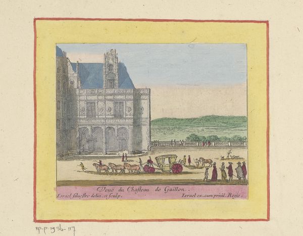 Curator: Look at this gorgeous watercolor, "View of the Hôtel de Bretonvilliers in Paris" by Israel Silvestre. It's dated sometime between 1631 and 1691. Editor: It’s incredibly light, airy. I feel like I could just float right into that pastel sky. The architecture almost seems secondary to the light reflecting off the water. It feels dreamlike. Curator: Silvestre was known for his detailed cityscapes, and here, he captures not just the building, but also a slice of Parisian life along the Seine. Note the figures, carriages, and boats... Editor: They’re like little brushstrokes of color! It’s less about precise representation and more about capturing a feeling, a mood. And the colours, muted but somehow vivid all at once – like a memory trying to sharpen itself. I bet this scene looked so different from our own modern lives. Curator: Absolutely. The Hôtel de Bretonvilliers was a lavish mansion on the Île Saint-Louis. The artwork, reflective of the Baroque style, really showcases the aspirations of the Parisian elite during that time, projecting an image of grandeur and sophistication through imagery. Editor: Did the colors themselves carry any political message? Was the choice of watercolor deliberate to avoid heavier statements about class or something else in the monarchy at the time? Curator: That's insightful! Watercolors in the Baroque period, when this was painted, did offer an accessible medium. Although I'd wager here it served less to deliver social critique and more for decorative or documentary purpose – capturing cityscapes became a very popular genre! This artwork allows us today, to consider what power truly resides in artistic representation, of which there isn't an absolute answer! Editor: The more you speak about the socio-political environment surrounding it, the more the architecture almost melts away and my focus now rests entirely on what is present along the waterfront. In a strange way, I like it! Curator: Art opens these unique windows, doesn’t it?
