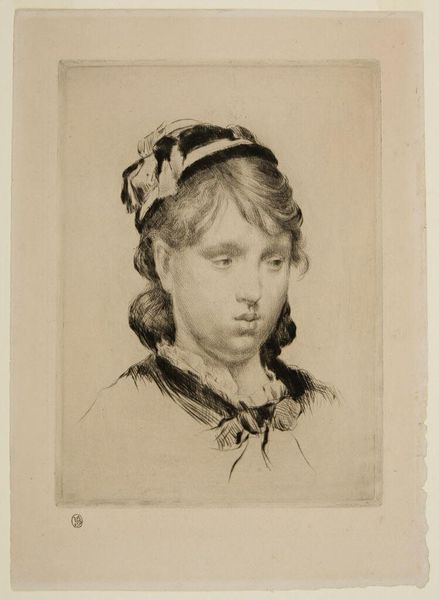 Curator: This is Carlo Dolci's "Portrait of a Girl," created around 1665 using colored pencils, charcoal, and pencil on paper. Editor: She looks utterly… resigned. Like a Renaissance Lolita waiting for her scene in a film. The faded colors amplify a deep sense of melancholy. Curator: Indeed. Dolci was a Florentine painter known for his meticulous technique and devoutly religious themes. While better known for his paintings, he also did portraits, and his precision carries over here. One sees the mark of Academic Art in its attention to minute detail and controlled execution. How these institutions dictated art making! Editor: Minute detail, yes, but there's something intensely personal. Look at how he renders the almost-transparent skin and childlike seriousness. There is an unsullied essence. Though Baroque and formal in a way, it captures youth, which, naturally, has no historical precedent. It simply _is_. Curator: Perhaps that's precisely what makes it Baroque, don't you think? This almost theatrical idealization, typical for the epoch, but grounded by the reality of youthful fragility… This work reflects shifting patronage trends where families desired commemorative artwork. Dolci skillfully navigates the demands for portraiture but the emotional expression adds to its importance as both a piece of Baroque era portraiture and sensitive character study. Editor: The girl’s stillness seems otherworldly, like a captured fairy—slightly sad but serene. It's strange. She simultaneously embodies, like you said, an era but exists outside its rigid definition. What's historical in one's life is utterly subjective. She stands alone with the weight of having everything expected and everything owed, as only art is able to reflect on these figures. Curator: Precisely, precisely. We can witness the socio-political dimensions embedded within the lines and colors... Art and portraiture is a great space to experience and question them. Editor: Definitely, this piece is very good food for the curious minds.