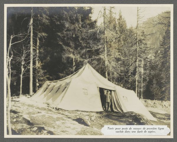 Curator: This evocative gelatin-silver print captures a scene titled "Militairen bij een voorpost op 1000 meter hoogte in de Dolomieten, vermoedelijk Italianen," dating back to 1916. Editor: Bleak. Utterly bleak. It’s the overwhelming sense that emanates from this landscape and from these huddled figures; the cold bite of the wind, the crunch of frozen earth. Curator: Indeed. What's fascinating here is the tension between the human and natural worlds. We see these soldiers, presumably Italian, at their outpost, this rough-hewn building at the foot of a towering mountain, maybe on the Italian front during the First World War. Editor: That building looks incredibly vulnerable beneath that rock face, doesn’t it? It seems like the unforgiving terrain mirrors the tenuousness of their position in the war, doesn’t it? Like one good push, one wrong move, and *blam*, gone. Curator: Precisely. And the photograph itself becomes a kind of historical document, almost like a painted history tableau frozen in time. Consider how photographs shaped public perception and understanding of warfare during this period. They brought a stark reality back home to be viewed on newsprint or gelatin-silver prints like this. Editor: It's chilling to think of it traveling this far – this specific image of despair. You can almost hear the eerie silence of that place… punctuated by, I suppose, the imagined distant echoes of distant canons. Did these men ever imagine their stillness being scrutinized a century on? I imagine not. Curator: Well, I suspect this photographic document invites us to contemplate not just military strategy or geographical realities, but also to empathize with their enduring sense of isolation amidst conflict. The way the image preserves that silence, that desolation… that's what lingers with me. Editor: Yes, ultimately, this photograph becomes less about grand strategies and more about the profound, individual experience of standing at the edge of everything.
