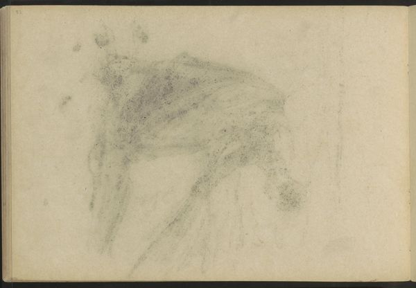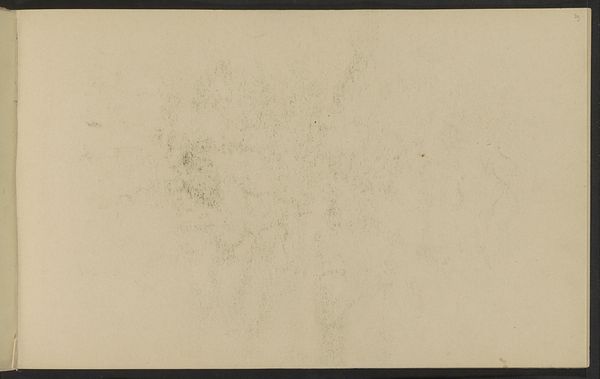 Curator: Here we have "Abklatsch van de krijttekening op pagina 9," a pencil drawing on paper by Willem Witsen, likely created between 1882 and 1884. Editor: Wow, ghostly. It’s more a feeling than a clear picture, like a half-remembered dream of a place. Bleak and evocative. Curator: The ethereal quality stems from the "Abklatsch" technique—essentially, a transfer or rubbing—yielding a reversed, often fainter, image compared to the original chalk drawing. The composition uses the negative space to suggest atmospheric perspective. Editor: It does create a certain distance, both visually and emotionally. I'm imagining a cold morning. It feels… unfinished, in a compelling way. Like Witsen caught a fleeting impression. Curator: Precisely. This aesthetic aligns with Impressionism's focus on capturing momentary sensory experiences, a shift away from precise representational accuracy towards the subjective perception of light and form. Notice how the structural elements are hinted at but not rigidly defined, inviting the viewer's active participation. Editor: It makes you lean in, filling in the gaps with your imagination. Do you think the title, “Rubbing of the Chalk Drawing on Page 9,” lends a clue about how to interpret the context of the imagery or its composition? Curator: Perhaps. Knowing its placement within a sketchbook invites speculation. Was it a preliminary sketch? A study of tonal values? The pragmatic nature of the title, juxtaposed with the poetic rendering of the image, sets up an interesting dichotomy. Editor: It certainly disrupts notions of romanticism! The rubbing suggests something secondary, or incomplete. Yet that may well be where it holds it allure. It invites us into its incompleteness to begin a journey that extends what is there on the page. It's as much about the journey from a thing as it is about the thing itself. Curator: A pertinent observation. It reminds us that even fragments can possess significant aesthetic value, urging us to reconsider conventional notions of artistic finish and originality. Editor: Well, I find myself utterly seduced by its spectral simplicity. It’s like whispering a memory.