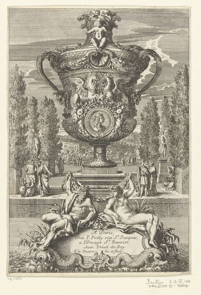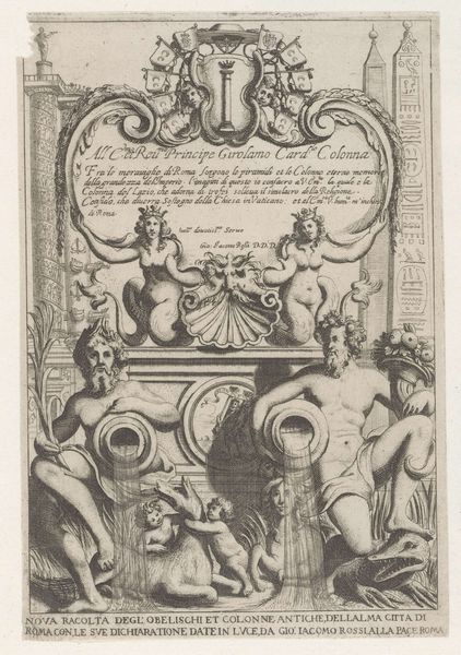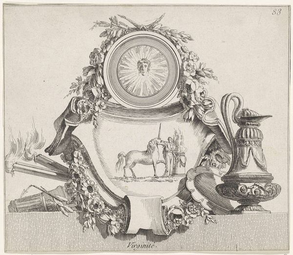 Curator: Ah, here we have Giovanni Battista Piranesi’s “Relief with Ash Urn and Two Offering Putti,” created in 1778. Editor: You know, it's fascinating how something etched in the 18th century can feel both timeless and oddly melancholic. Those cherubic figures offering up…well, it could be libations, or sorrow. Curator: Precisely. The imagery of putti flanking a central vessel resonates with classical antiquity's deep concerns about ritual, offering, and remembrance. We see echoes of ancient Roman sarcophagi and funerary art. Editor: So, it's kind of like Piranesi’s reminding us, with a Baroque flourish, that even joy is fleeting? It's all ornate vines and cherubs but there's something poignant about this depiction of offering. Those figures—the detail is astonishing. Curator: The Baroque loved a paradox. It reveled in blending drama with underlying meaning. Those putti are not merely decorative, but symbols, invoking a long history of offerings and transition. It reminds one of the fragility of life. This engraving preserves something ancient. It allows us to contemplate an idea, even a physical object, through time. Editor: Engravings like this give you that sense of peering back—catching glimpses of a world that existed, crumbled, then got a revival through the artist's work. What I find interesting is its depiction. Did Piranesi literally record the ornament, or added to it through his Baroque lens? Curator: Ah, that's the quintessential question with Piranesi. His work treads the line between documentation and creative interpretation. He certainly aimed for accuracy. His antiquarian interests fueled his artistic style and creative output, and this aesthetic informed his perception of historical events. Editor: So it's a mix then—facts filtered through feeling. Looking at it now, it reminds me how we, in turn, keep re-interpreting symbols, giving them new context. This work now carries his artistic mark along with ancient cultural memory. Curator: A beautiful thought. It encapsulates perfectly the enduring power of the Baroque – its capacity to blend beauty and symbolism in a lasting and memorable way. Editor: Well, I find that particularly amazing—how things morph into new stories. We find them and make them speak again.