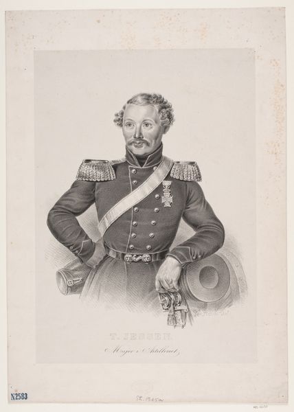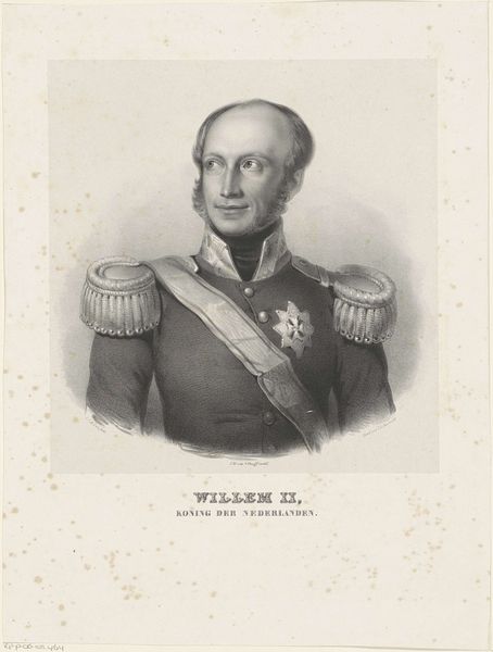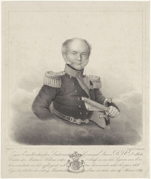 Editor: This is a portrait of Commander Bernardus Johannes Cornelis Dibbets, made sometime between 1808 and 1848 by Pieter Barbiers the fourth. It’s a print made from graphite and engraving. I find the detail of the uniform and the laurel wreath incredibly striking. What stands out to you? Curator: This piece provides a window into the evolving public perception of military figures during a tumultuous period in Dutch history. The rigid formality, typical of academic art, underscores the institutional importance of the military in shaping national identity. Notice the placement of Dibbets within the composition; he’s presented as an individual but is consciously framed with emblems of military authority, medals and decorations. It prompts the question: is this simply a depiction of a man, or a calculated image intended to inspire loyalty and project power? Editor: That’s interesting. I was focusing on the artistic skill, but you are pointing out how this image functioned within society. Did the burgeoning museum culture of the time affect portraiture like this? Curator: Absolutely. As museums and public art galleries became more established, they shaped what kind of art was considered valuable. Images like this served to canonize figures like Dibbets. The engraving medium also ensured a wider dissemination of the image than painting would have. Editor: So, it’s like an early form of propaganda, in a way? A carefully crafted message meant for public consumption. Curator: The politics of imagery are complex, especially within institutions like the military. It's designed for reverence, isn't it? But by displaying it publicly it opens the image up for scrutiny. Consider how his legacy has been debated over time; does this portrait solidify a favorable public perception or something more ambiguous? Editor: I never considered how displaying something so official makes it open for interpretation and challenges to the established viewpoint. Curator: Precisely! Art becomes part of the public sphere. Thinking about that broader history of reception definitely shapes how we understand its significance.