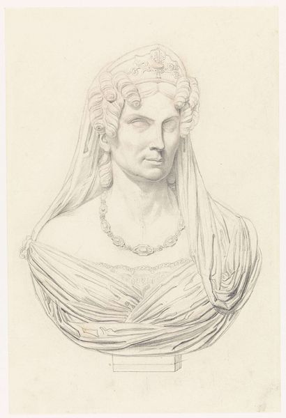 J.F. Clemens created this "Kvindehoved i antik stil," or "Female Head in Antique Style" using engraving, a printmaking technique where lines are cut into a metal plate, which is then inked and pressed onto paper. Look closely, and you'll notice the precision and detail achieved through the careful use of line. See how Clemens uses hatching and cross-hatching to create tonal variations, giving depth and volume to the woman's face and hair. The deliberate and meticulous process of engraving allowed for a high level of control, resulting in crisp lines and fine details. Consider that each line was carved by hand, a labor-intensive process demanding skill and patience. This kind of printmaking was deeply tied to the world of commerce, allowing for the mass production of images. Yet, at the same time, it was considered a fine art, requiring mastery and aesthetic sensibility. By appreciating the artistry of engraving, we recognize that the distinction between craft and art is a fluid and constructed one.